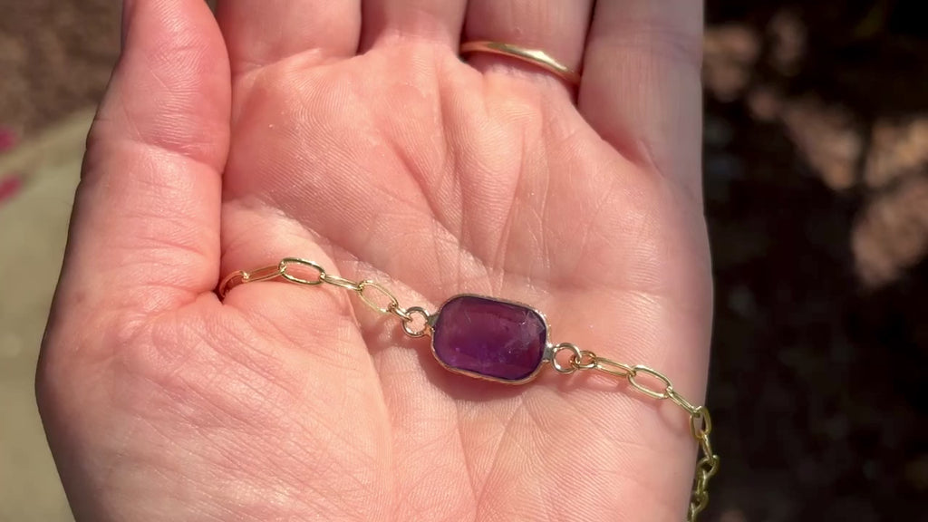 Amethyst on 16 in 14KGF Vintage Paper Clip Chain