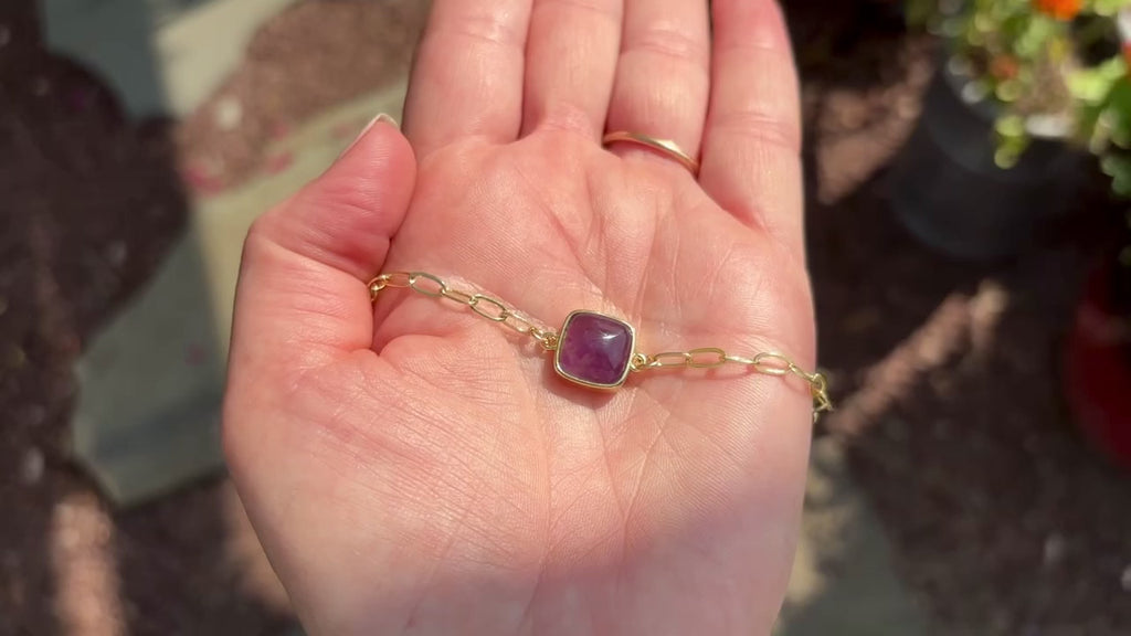 Amethyst Square on 16 in 14KGF Vintage Paper Clip Chain