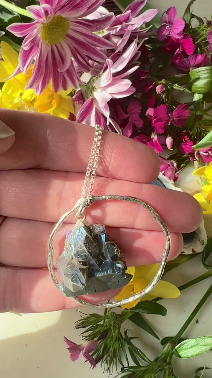Incredible Angel Aura Cluster hangs from a delicate sterling silver hoop and hand made sterling chain.