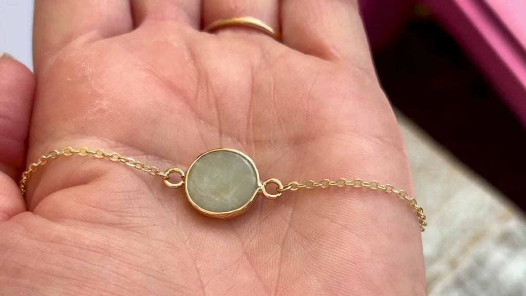 Translucent Blue Lace Agate disk hangs delicately on a 16" vintage 14KGF chain.