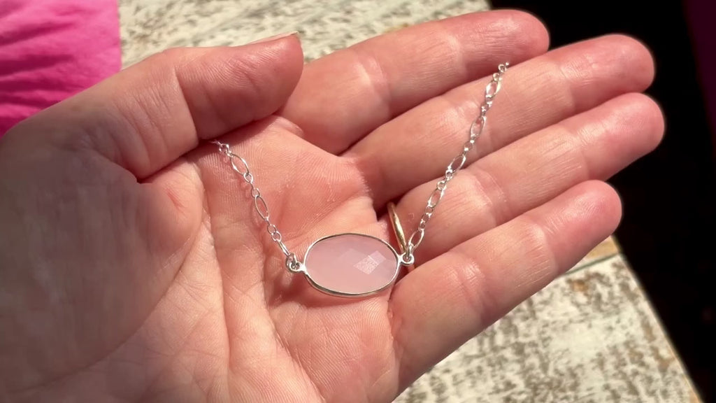 Rose Quartz Faceted Oval on Vintage 16 in Sterling Silver Chain