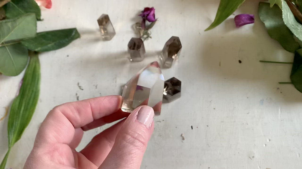 Place your Smokey Quartz Point by your tail bone or on the tops of your feet when lying down to help ground your energy and reduce panic attacks and fear.
