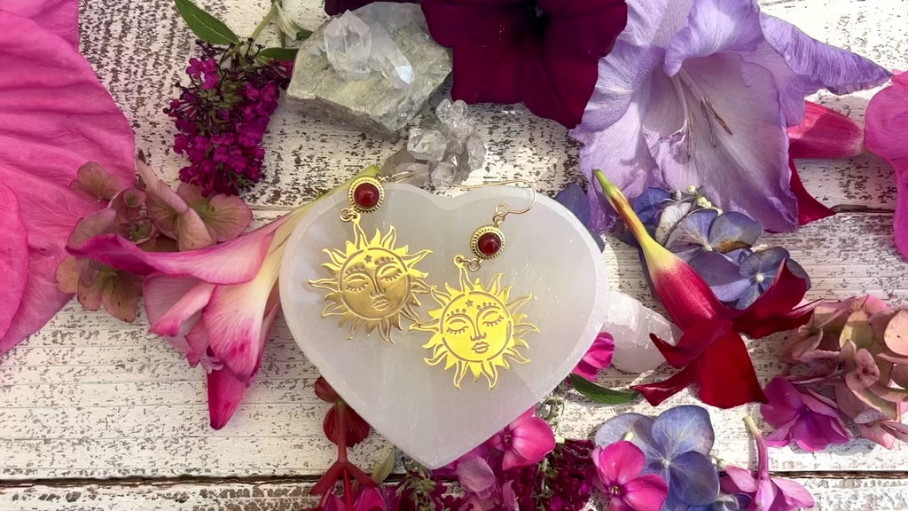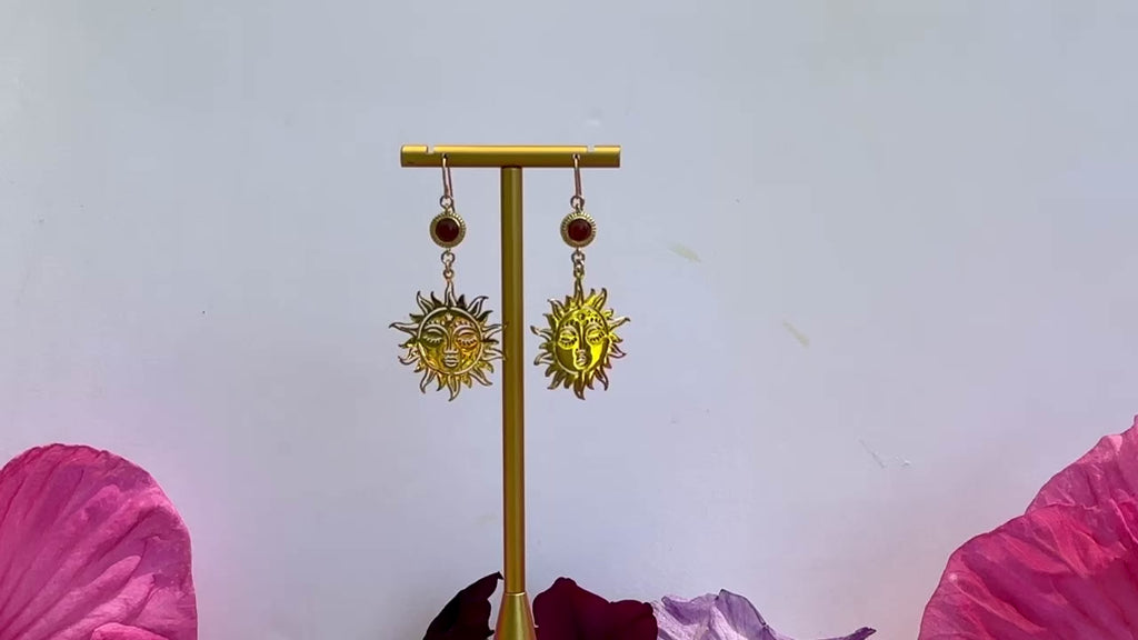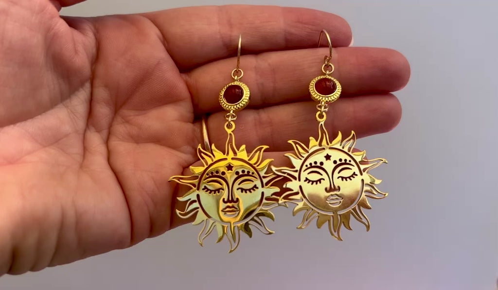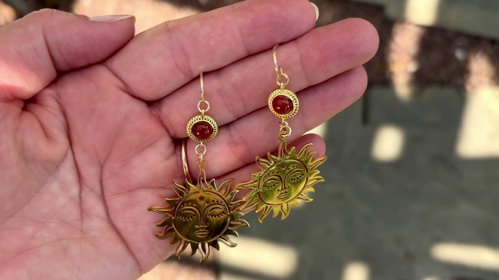 Sun Earrings with Gold Filled Carnelian Connectors on 14KG Backs.